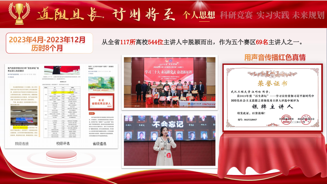 周磊宣读了本科生国家奖学金、“最美大学生”评审办法。各位同学从思想政治表现、学习成绩、学科竞赛与科研成果、志愿服务活动等方面作了详细汇报。“西门子”杯全国特等奖(全国第一名)团队成员、“最佳女工程师”获得者廖巧巧汇报了在逐梦道路上,最佳女工程师成长之路。2023年省级银牌主讲人汪巧玲展现了电气学子在学习征程道路上不断进取的精神风貌。评委成员肯定了各位同学取得的成绩,同时指明了不足和努力改进的方向。