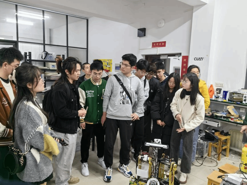 会后,师生一行参观了机电工程学院Robomaster实验室和威尼斯vns08866登录电子设计大赛实验室,通过实物演练和技术交流,极大地激发了同学们对学科竞赛的兴趣,拓宽了同学们的视野、丰富了专业知识。